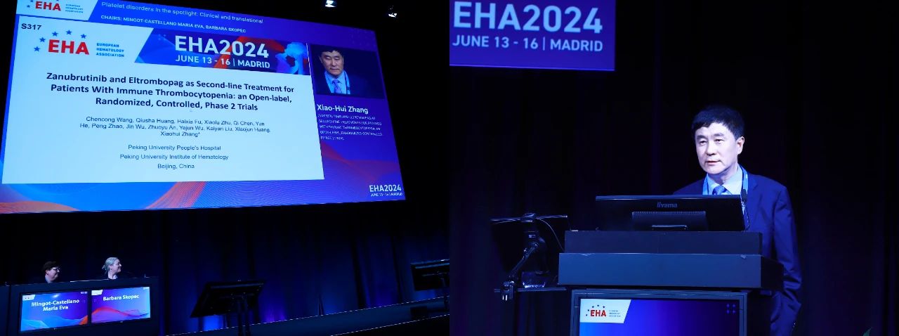 张晓辉教授:2024年第29届欧洲血液协会(EHA)年会在西班牙马德里盛大开幕。今年,我们团队荣幸地获得了4项口头报告的机会,这些报告涵盖了恶性血液肿瘤等多个领域的学术成果。主要包括造血干细胞移植,细胞治疗(特别是CAR-T治疗)以及体液免疫和精准诊断的过程。同时,我们也报告了出凝血疾病中免疫性血小板减少症的临床研究。