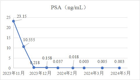 本例患者为激素敏感性前列腺癌(pT2N1),接受戈舍瑞林微球联合多西他赛治疗后PSA和睾酮水平得到迅速控制,行根治性前列腺癌切除术以进一步改善患者预后。