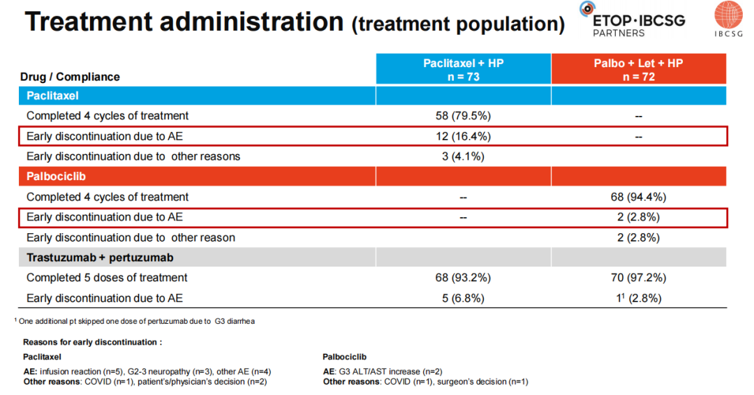 尽管主要假设未被支持,TOUCH研究首次表明,在双重抗HER2治疗的基础上,去化疗的Pal+L方案的pCR率与每周紫杉醇相当。Pal+L引起的中性粒细胞减少未显示出临床影响,表明这一方案可能是HR+/HER2+绝经后乳腺癌患者,尤其是老年患者的可选替代方案。目前正在进行转化研究以探索具有预后/预测意义的潜在基因特征。