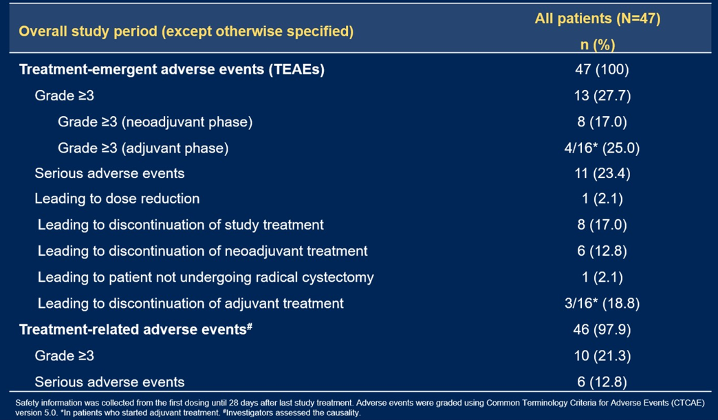 目前,单独使用免疫治疗、单独使用ADC药物以及免疫联合化疗所取得的pCR率基本在30%~50%之间。而我们研究团队今天公布的结果显示,整体患者人群的pCR率达到了63.6%,这是在大会讨论中所展示的一系列研究中最高的pCR率。如此高的有效率,结合后续的手术及术后辅助免疫治疗,有望使MIBC的疗效取得质的飞跃。此外,鉴于此方案疗效显著,未来我们还可能针对特定患者群体开展保膀胱的治疗策略,这些研究将为未来的治疗提供新的思路和方向。