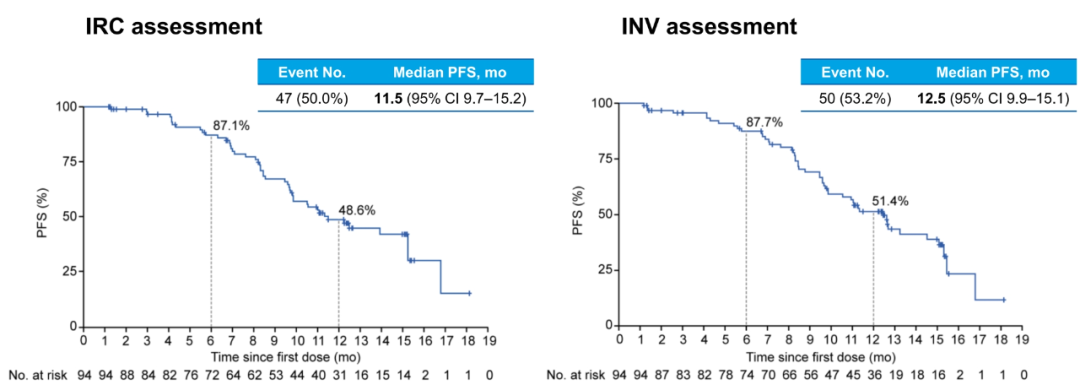 图4.HORIZON-Lung研究IRC评估的PFS曲线与研究者评估的PFS曲线