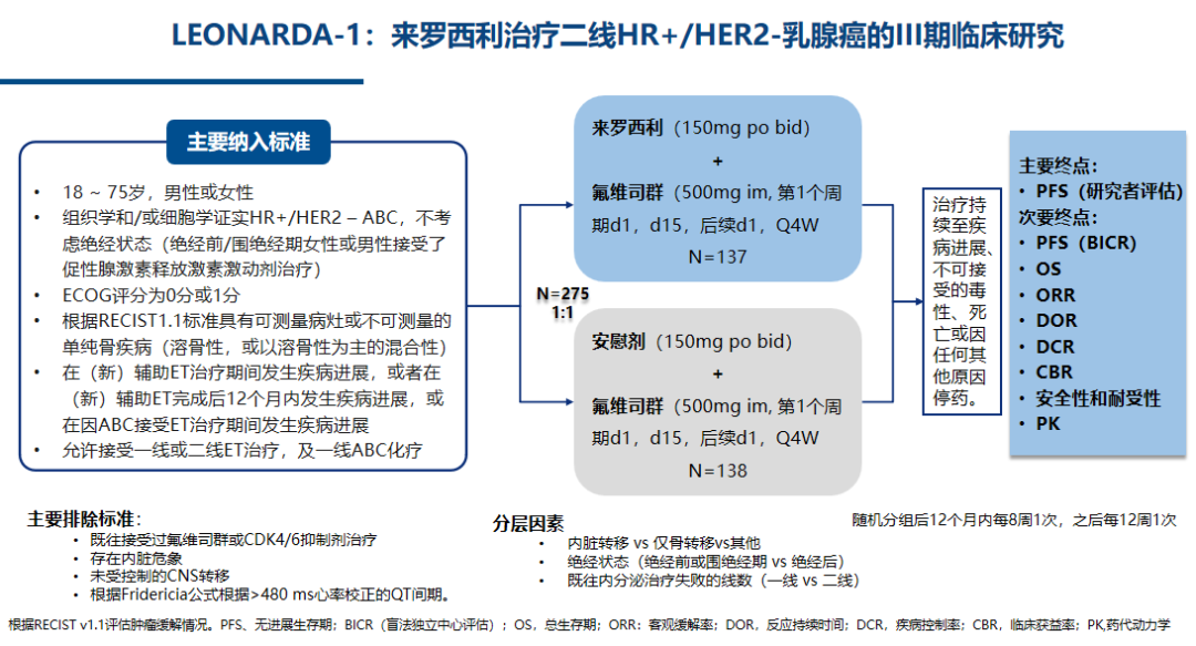 2、Xichun Hu,et al.LEONARDA-2:Lerociclib plus letrozole versus placebo plus letrozole in HR+/HER2-advanced or metastatic breast cancer.2024 ASCO abstract 1052
