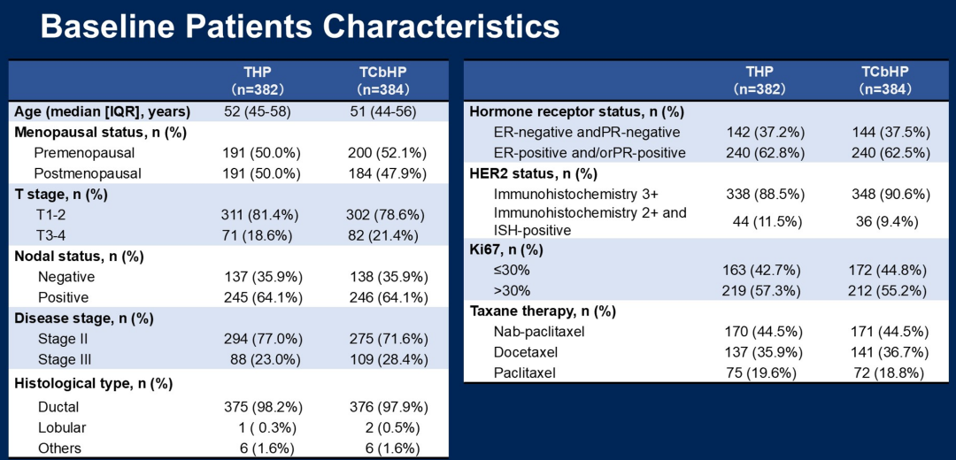 然而,我并不认为这种“降阶梯”治疗方案可以适用于所有患者。该研究入组人群的基线特征显示,T1-2期患者占比约80%,T3-4期患者占比约20%,II期患者约占四分之三,而III期患者约占四分之一,可见总体的入组患者肿瘤负荷相对较低,且目前尚未看到长期生存数据。因此,在目前的临床实践中,TCbHP仍然是标准选择,但对于肿瘤负荷较小或年龄较大、耐受性差的患者,“降阶梯”治疗方案是一个可考虑的选项。