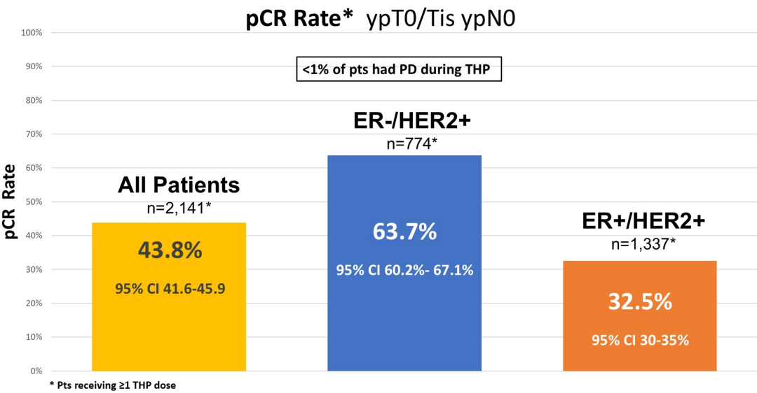 研究结果显示,该方案在总体人群中的pCR率为43.8%,其中ER阴性患者pCR率为63.7%,ER阳性患者为32.5%。这些结果表明,对于部分患者(II期/IIIa期)而言,4个周期的THP方案可能已足够。