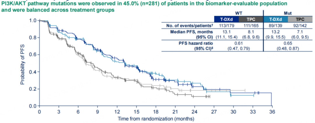 DB-06研究的这些探索性分析结果显示,针对不同耐药或致病突变的患者有一致的治疗获益,而且无论是“从前看”还是“往后看”,T-DXd都展现了克服耐药和减少交叉耐药的潜在治疗优势。