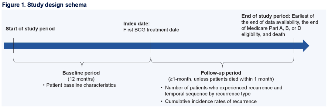 本研究对接受BCG治疗的高危非肌层浸润性膀胱癌(HR-NMIBC)患者进行了一项回顾性队列研究,以BCG起始日期为指标日期。开发了一种复发算法,用于识别和分类复发事件,包括NMIBC复发、肌层浸润性膀胱癌(MIBC)进展和远处转移。