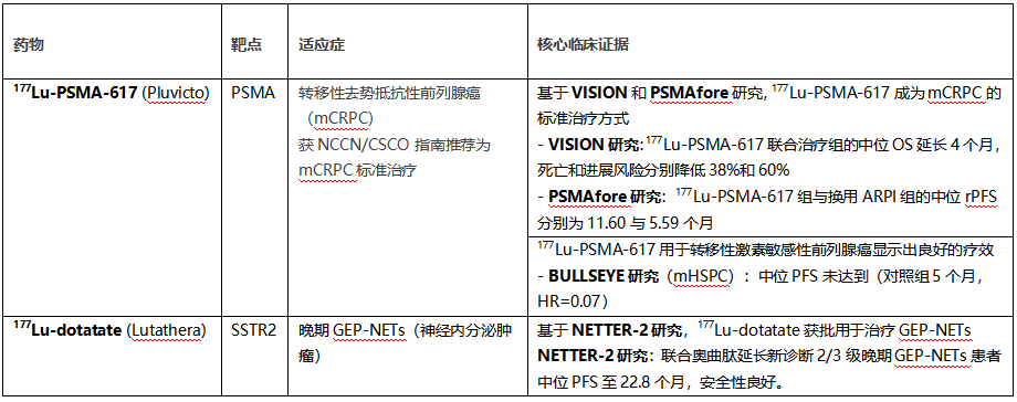目前全球已有13种RLT药物获批。177Lu-PSMA-617和177Lu-dotatate的获批上市,极大改写前列腺癌和神经内分泌肿瘤治疗现状,目前也在积极拓展其适应症;