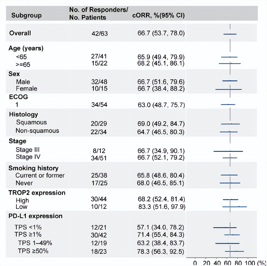 ?在TROP2低表达患者中,ORR分别为42.9%和83.3%;在TROP2高表达患者中,ORR分别为36.8%和68.2%。同样地,TROP2表达与客观缓解率之间未显示出显著相关性。