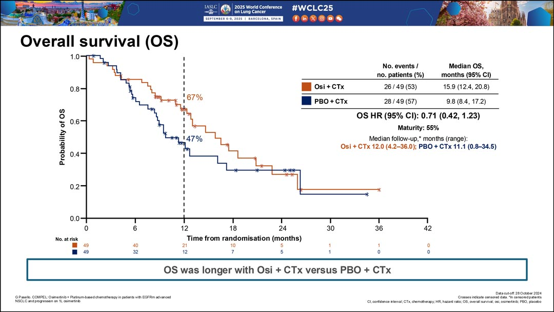 WCLC 2025丨COMPEL研究:奥希替尼联合化疗用于EGFR突变非小细胞肺癌进展后疗效优于单纯化疗