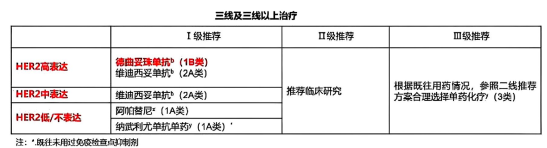 《CSCO胃癌诊疗指南(2025)》推荐的三线及三线以上治疗方案