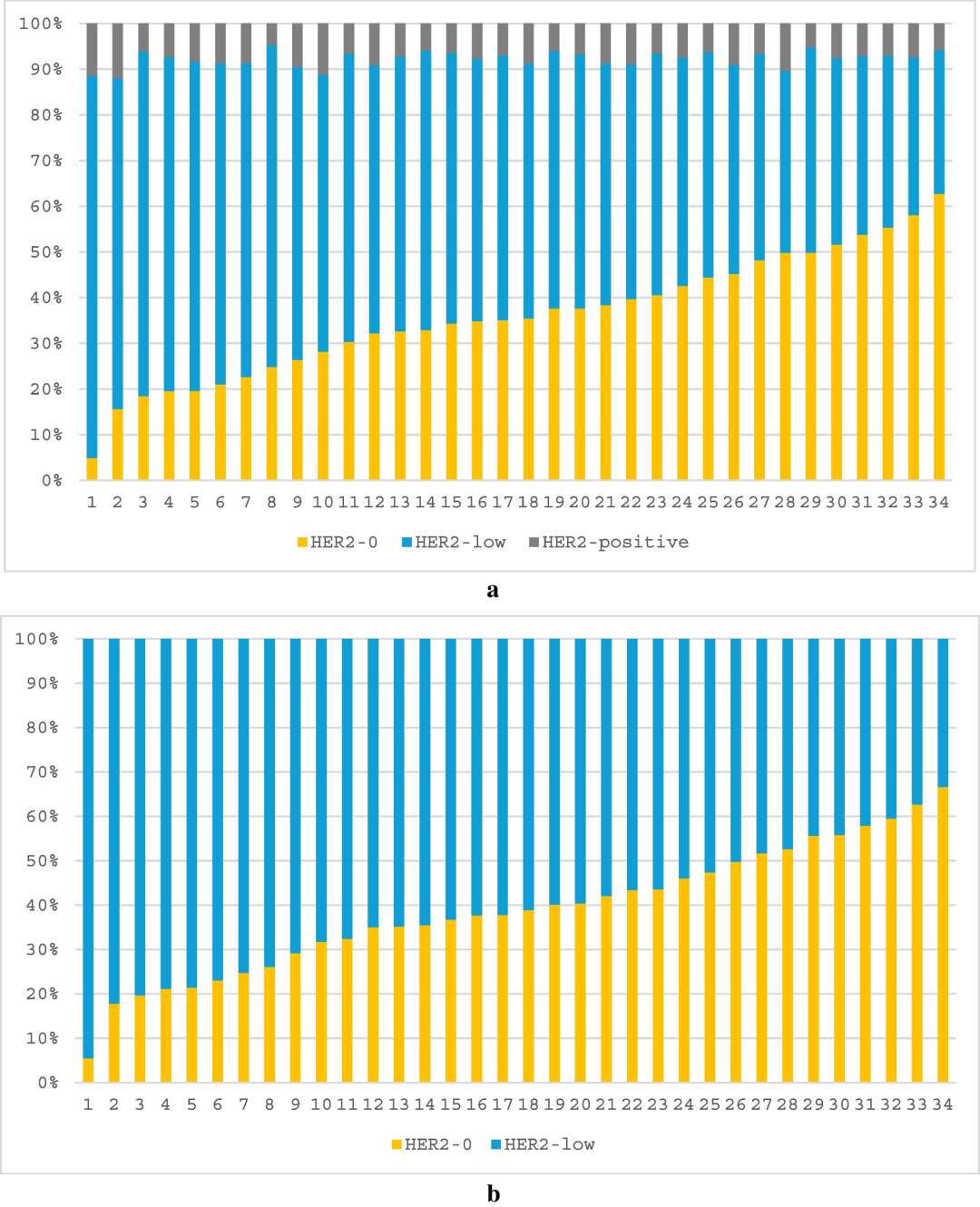 HER2抗体与HER2低表达比例之间的相关性