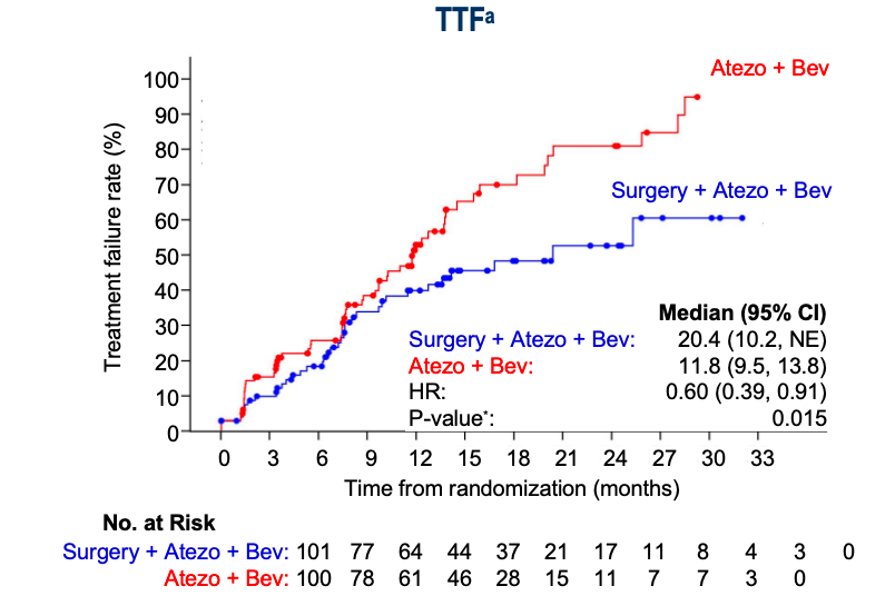 主要终点:手术+维持治疗组TTF(IRF-RECIST v1.1)较非手术组有显著延长