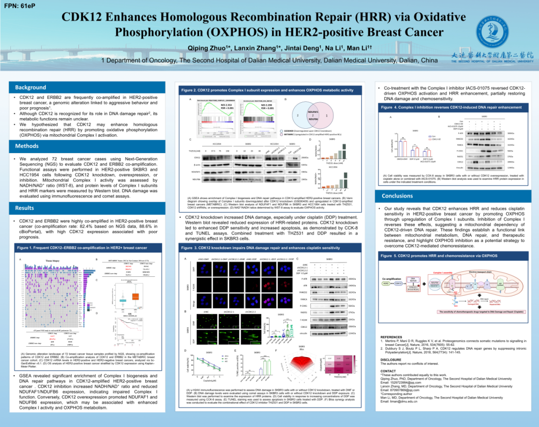CDK12是一种参与DNA损伤应答与转录调控的细胞周期相关激酶,在HER2阳性乳腺癌中常与ERBB2发生共扩增。既往研究多聚焦于CDK12对同源重组修复(Homologous Recombination Repair,HRR)过程的调控作用,但其是否通过线粒体代谢过程进一步影响DNA修复能力仍不清楚。