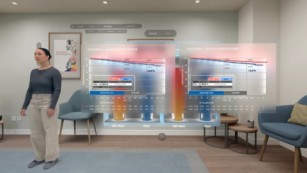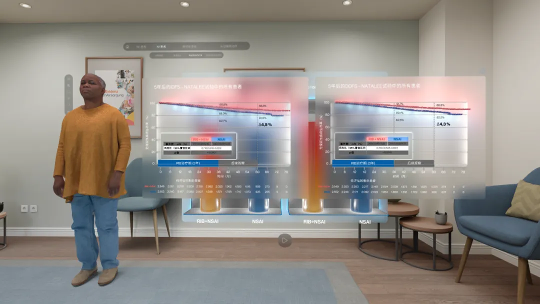 VR系统通过动态可视化这些风险数据与疗效结果,将抽象的统计学差异转化为直观的视觉体验。医生在虚拟环境中操作肿瘤模型时,系统实时叠加瑞波西利的作用机制与风险降低数据,形成“视觉-数据”闭环,强化对复发风险的系统认知和疗效理解。