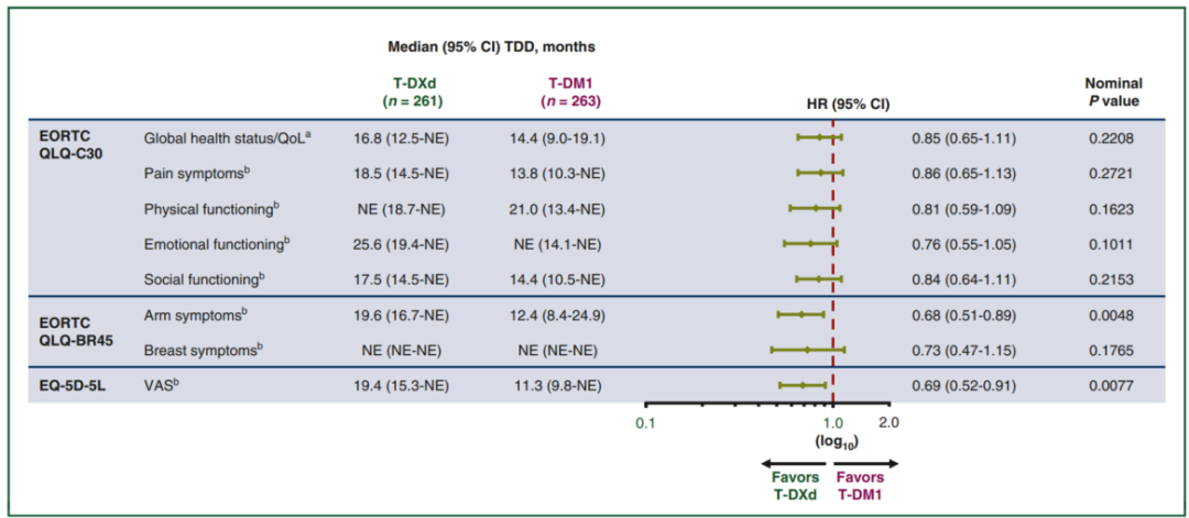 DESTINY-Breast03研究患者报告的生活质量到中位疾病恶化时间(TDD)
