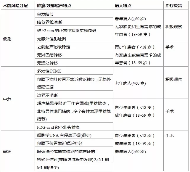 表1. PTMC术前危险分层临床决策框架