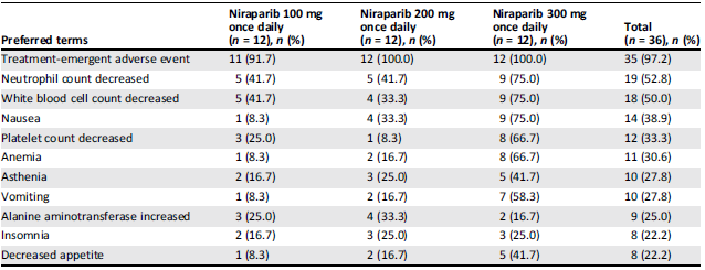 表2. 尼拉帕尼治疗相关的不良事件