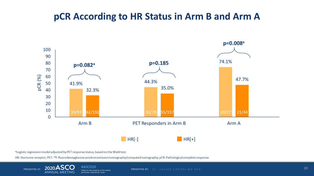 该研究结果提示,40%的患者经过HP联合内分泌治疗,即可获得较好的pCR率,期待后续这部分患者能豁免化疗。对于这部分患者的预后,期待能有更好的预测工具产生,从而指导临床实践。