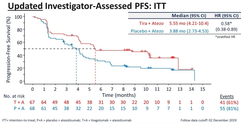 研究结论:在Atezolizumab治疗的基础上进一步联合TIGIT抑制剂——Tiragolumab可提高患者疗效。