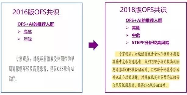 图1《中国早期乳腺癌卵巢功能抑制临床应用专家共识》2016版及2018版OFS的推荐人群