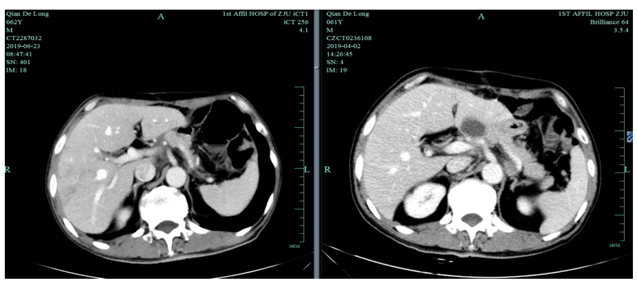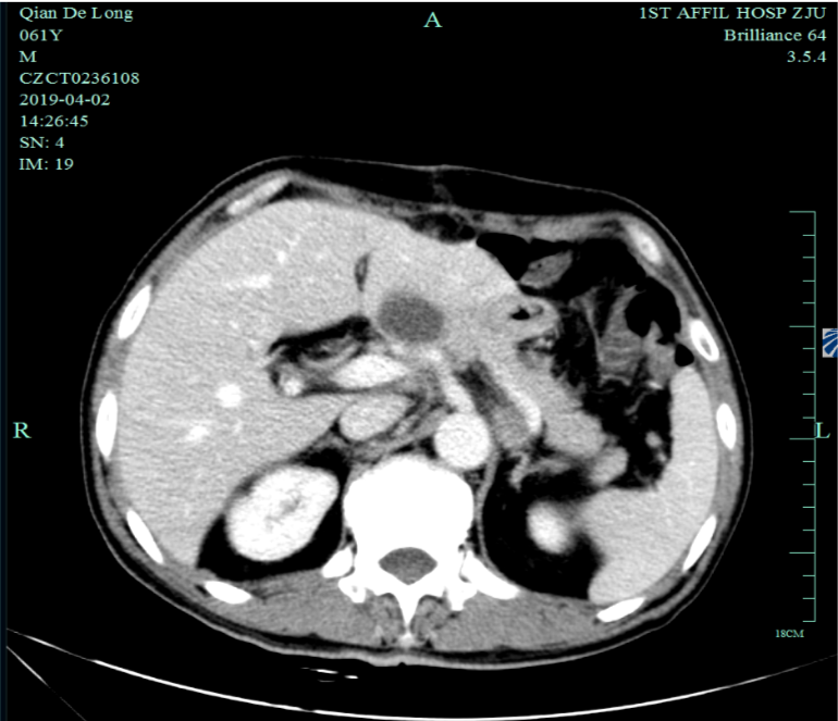 入我院后全面进行评估(2019.4):全腹部CT平扫+增强评估提示腹膜后,胰腺周围多发淋巴结增大,淋巴结转移考虑。