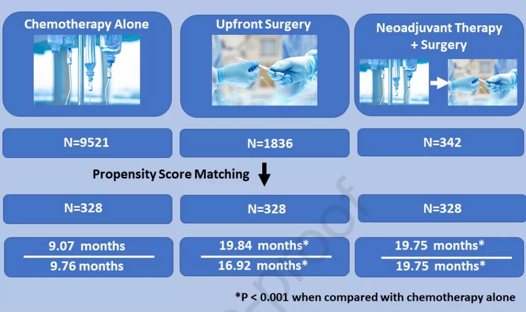 研究人员在国家癌症数据库(NCDB)中搜索了2010~2015年接受R1/R2手术、并在术前接受或未接受化疗的Ⅱ期胰腺癌患者的数据,将其与仅接受化疗的Ⅱ期患者进行比较。结果发现: