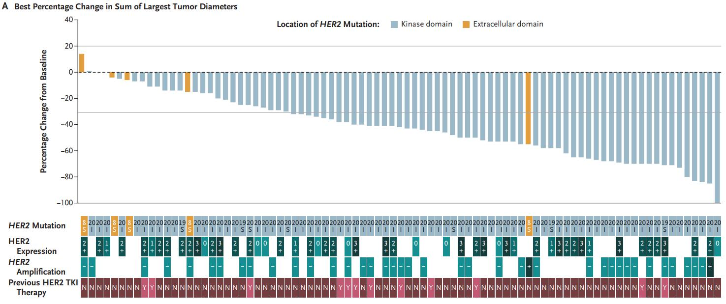 DS-8201治疗HE-2突变NSCLC患者的瀑布图