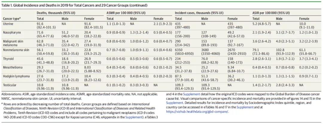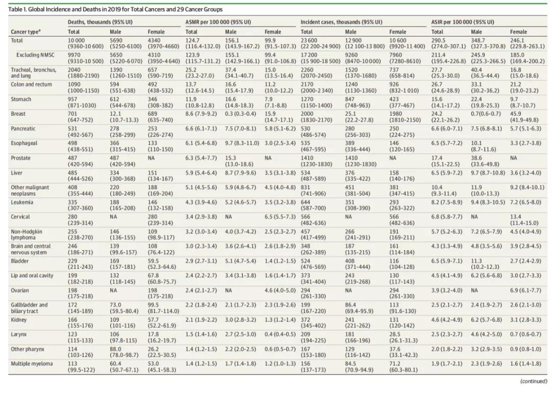 2019年全球癌症总量和癌症特定负担的估计