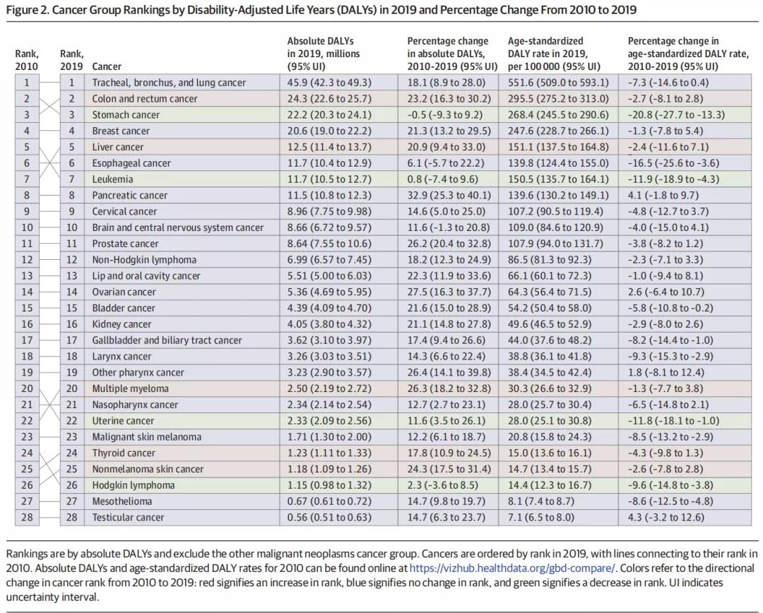 JAMA Oncol丨2010年~2019年世界范围内癌症负担变化