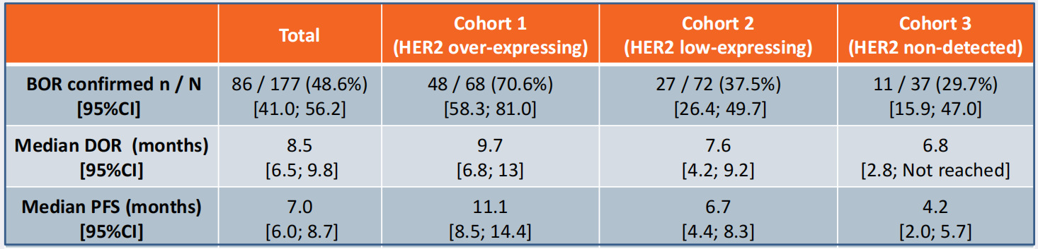 DAISY研究:T-DXd对HER2零表达患者有抗肿瘤活性