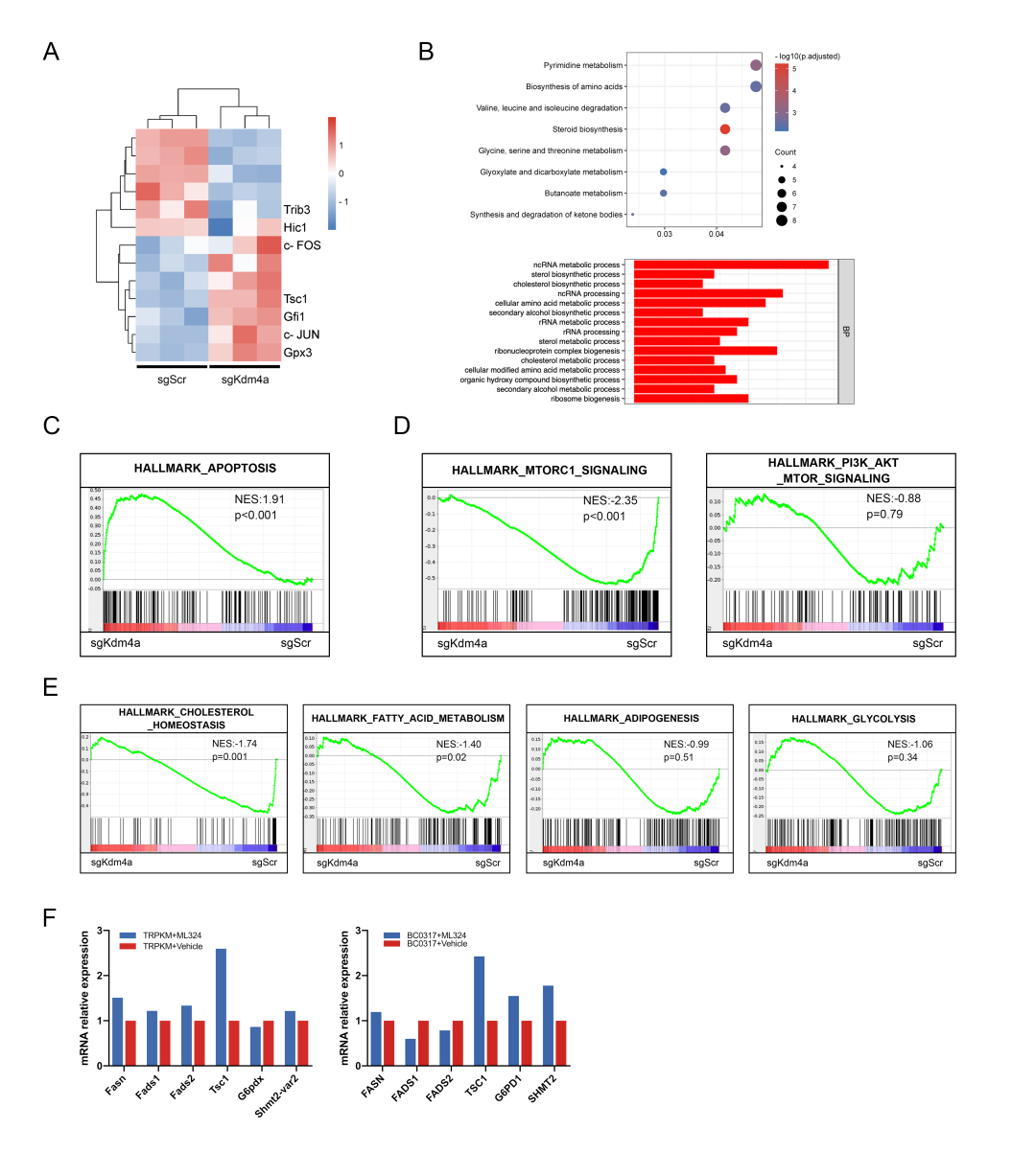 研究背景:在临床实践中,肌层浸润膀胱癌患者即便采用手术联合放化疗等一线综合治疗手段,所获得的生长收益仍旧有限,而在膀胱癌中目前尚缺乏有效的靶向治疗手段。在此背景下,我们构建并依托小鼠膀胱肿瘤类器官药物筛选平台,对一系列表观遗传相关小分子抑制剂进行筛选。我们观察到靶向组蛋白去甲基化酶KDM4的小分子抑制剂ML324可在体外显著抑制小鼠、人膀胱肿瘤类器官的生长。为进一步探究其中的机制,我们展开了系列研究分析。
