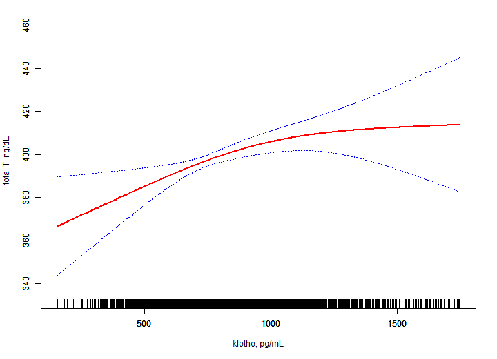 研究内容:Klotho是由衰老抑制基因Klotho编码的单通道跨膜蛋白。Klotho包含一个短的胞间结构域和两个序列相似性高的长胞外结构域。由ADAM10和ADAM17切割的胞外结构域可以释放并鉴定为可溶性Klotho,可用于反映肾脏Klotho的表达。缺乏α-Klotho被证实与多种衰老相关疾病如心血管疾病、癌症、2型糖尿病和慢性肾病相关,与全因死亡率之间也有很强的关系。睾酮水平随年龄增长而生理上下降。50多岁的男性中,有7%的人可以被诊断为睾酮缺乏,这可能增加罹患与衰老相关的疾病包括心血管疾病、糖尿病、低瘦体重和代谢综合征的风险。本研究纳入了来自于2011-2016年NHANES研究的3750个对象,在调整后的模型中,总睾酮每增加1 ng/dL, klotho增加0.165 pg/mL (p = 0.004)。研究发现了美国男性的klotho水平随着总睾酮、雌二醇和性激素结合球蛋白水平的增加而增加。这一发现可能在人口结构老龄化的社会中对于男性性激素水平衰减的病人的筛查提供方向,以及对于这一部分病人的治疗提供可能的靶点。