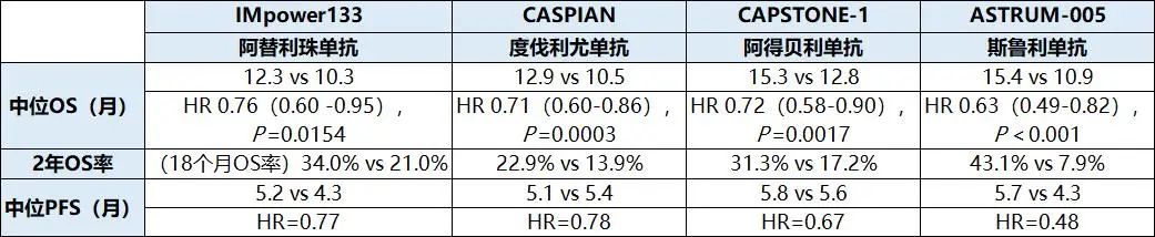 在之前的IMPower-133研究以及Caspian研究中,我们都看到了在中位PFS延长只有不到一个月甚至没有任何延长的情况下,中位OS有两个月左右的延长。在ASTRUM-005研究中,12个月PFS率是23.6% vs 6.0%,HR=0.48,从数值上看优于先前研究的PFS结果,这也支持ASTRUM-005研究的OS结果。