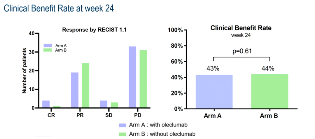 结论:在度伐利尤单抗+卡铂+紫杉醇基础上加用抗-CD73单克隆抗体Oleclumab未能增加晚期三阴性乳腺癌患者第24周的临床获益率。正在进行的转化研究旨在更好地解释本研究联合治疗方案的作用机制。