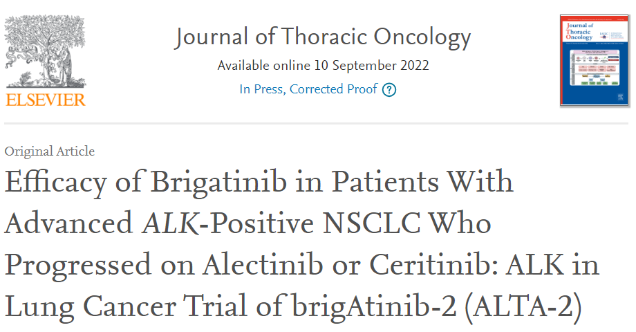 研究背景:布格替尼是一款口服二代ALK-TKI类药物,在ALTA-1L研究中,接受布格替尼和克唑替尼治疗的晚期ALK阳性非小细胞肺癌患者的中位PFS分别为24.2个月和11.1个月,HR=0.48;克唑替尼耐药的患者接受布格替尼治疗的ORR、中位PFS和中位OS分别为56%、16.7个月和40.6个月。在临床前研究中,布格替尼对ALK获得性耐药的二次突变具有广泛的抑制作用,对多种耐药突变的抑制浓度均低于克唑替尼、赛瑞替尼及阿来替尼。本研究旨在探索布格替尼治疗赛瑞替尼或阿来替尼耐药的晚期非小细胞肺癌患者。