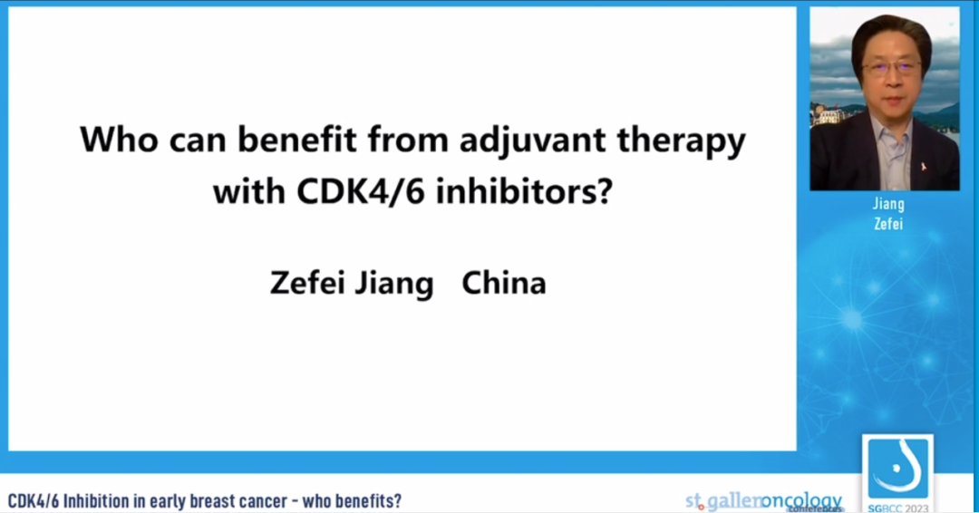 编者按:第18届St.Gallen国际乳腺癌大会(SGBCC 2023)于当地时间2023年3月15日在“世界音乐之都”维也纳拉开帷幕。在大会“SGBCC Academy”(SGBCC学院)环节,解放军总医院肿瘤医学部江泽飞教授带来了——“Who can benefit from adjuvant therapy with CDK4/6 inhibitors?”的分享,赢得了大家的一致好评。随后,《肿瘤瞭望》对江泽飞教授进行了专访,请他对当前CDK4/6抑制剂在乳腺癌系统治疗中的格局、不同CDK4/6抑制剂的适用人群等问题进行了介绍。