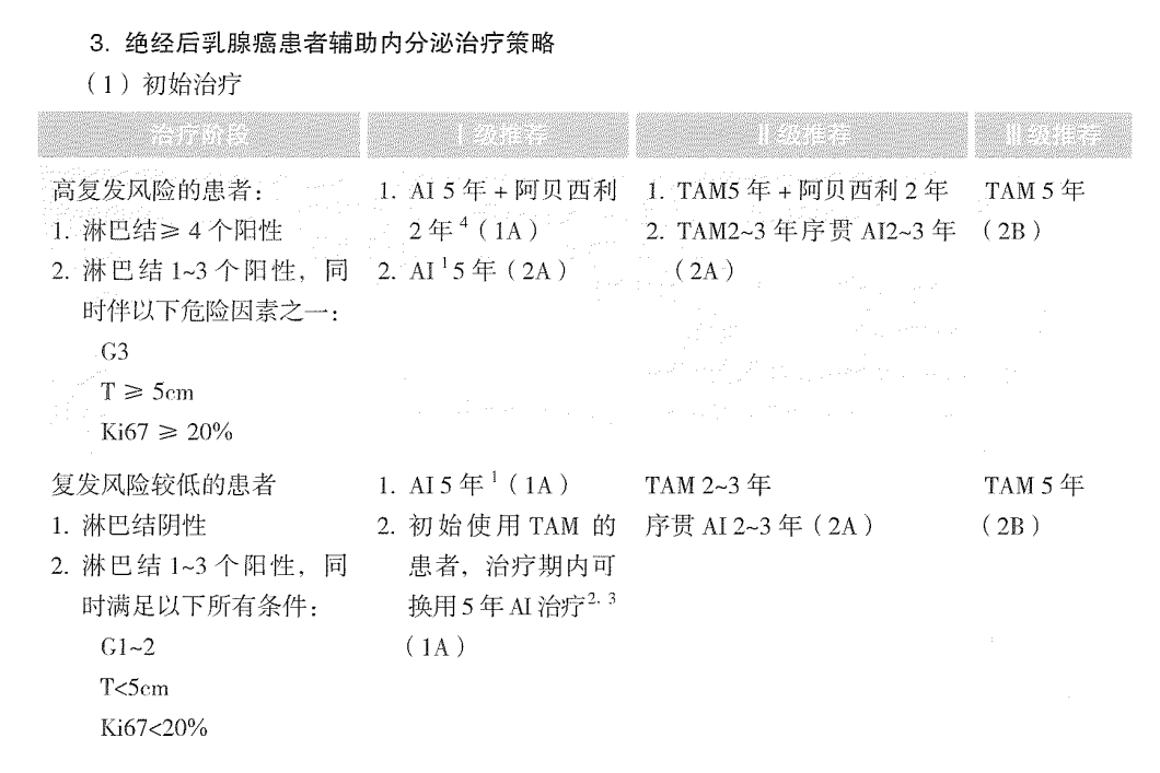 △CSCO BC指南(2022年)绝经后乳腺癌患者辅助内分泌治疗策略