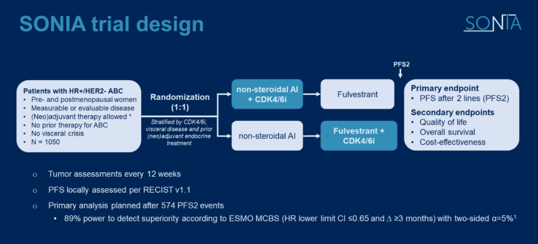 但是如果在可及性不好的地区,SONIA研究还是给临床医生提供了很好的决策依据。临床中经常会有患者会为了争取治疗获益最大,“砸锅卖铁”也要买到最新的治疗药物。但有了SONIA研究后,我们可以很有信心地告诉患者,继续应用相对经济可及的内分泌治疗药物,等到疾病进展后再使用CDK4/6i,生存获益是相似的。