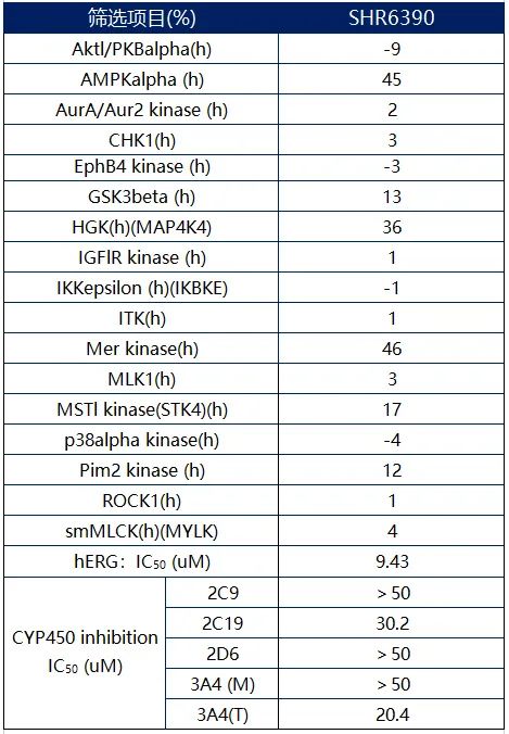 表3. 达尔西利对广谱激酶的选择性(抑制率数据)、hERG抑制数据和DDI效应