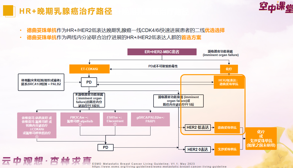 编者按:目前,CDK4/6抑制剂联合内分泌(CDK4/6i+ET)治疗已成为HR阳性晚期乳腺癌患者的标准一线治疗方案。但一线CDK4/6i+ET进展后的治疗选择,当前国内外指南并无标准统一推荐。以T-DXd为代表的新型ADC药物,为后CDK4/6i+ET时代提供了新的选择。本期《空中课堂》栏目,我们特邀湖南省肿瘤医院欧阳取长教授为我们详解HR+晚期乳腺癌最优治疗策略。