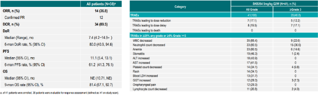 [25]Q.Ouyang,Y.yin,et al.SKB264(MK-2870)in previously treated hormone receptor-positive(HR+)/HER2-negative metastatic breast cancer(mBC):Results from a phase I/II,single-arm,basket trial.2023 ESMO 380MO.
