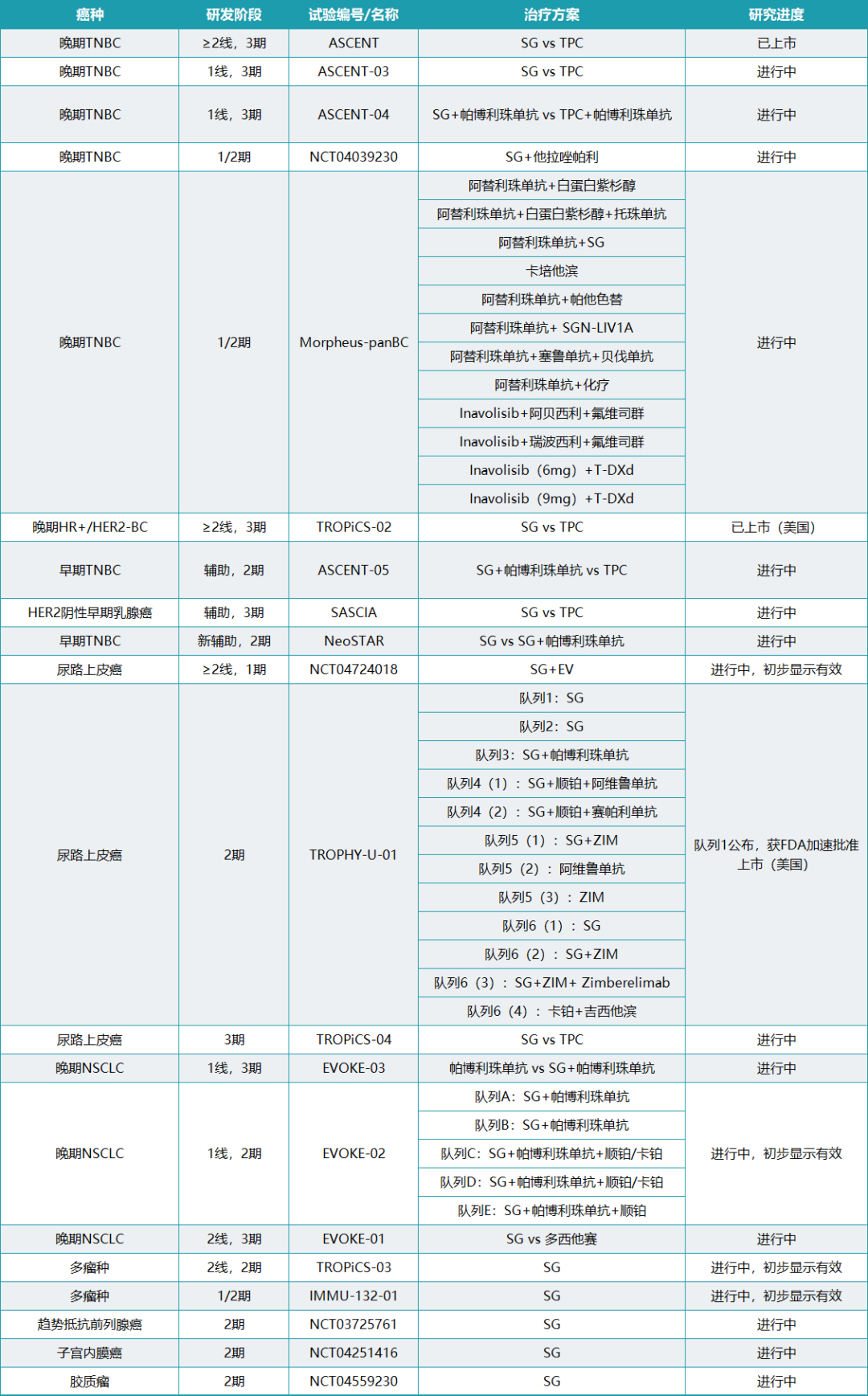 综上可见,在多种Trop-2表达的肿瘤中,SG珠玉在前,已经展开多方布局,为更多的Trop-2 ADC开拓道路,为泛癌种的治疗开启ADC时代的大门。