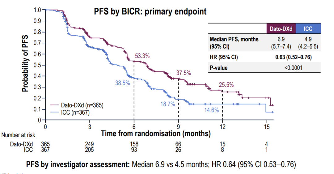 [23]Bardia A,Jhaveri K,Im SA,et al.Datopotamab deruxtecan(Dato-DXd)vs chemotherapy in previously-treated inoperable or metastatic hormone receptor-positive,HER2-negative(HR+/HER2–)breast cancer(BC):Primary results from the randomised Phase 3 TROPION-Breast01 trial.2023 ESMO LBA11.