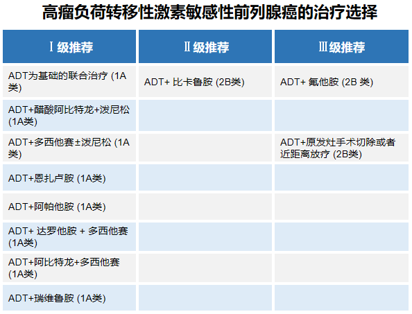 目前,转移性去势敏感性前列腺癌(mHPSC)是晚期前列腺中较为常见的类型,此类患者仍处于激素敏感阶段,预后相对于其他晚期疾病要好一些;其首选治疗策略是在雄激素剥夺治疗(ADT)的基础上联合其他治疗,包括化疗、新型内分泌治疗(NHT)、核素治疗、放疗、手术等。目前,临床实践或指南推荐主要根据肿瘤负荷进行分层[1],不同NHT用于低瘤负荷和高瘤负荷的循证医学证据有所不同。总体上,ADT+NHT已经成为mHSPC的首选药物治疗,可及性不好的患者可考虑ADT联合化疗;局部治疗对改善患者预后仍有价值,仍是部分低瘤负荷、寡转移mHSPC患者的治疗选择。